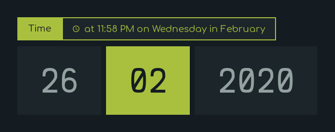 - Time: Display Time, Day, Month, Date.