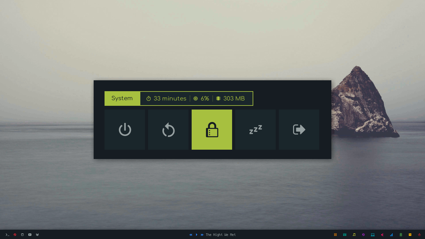 - Powermenu: A classic power penu, shows Uptime, CPU & Memory usages.