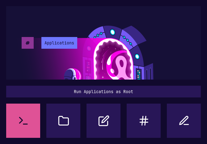 Apps As Root Open Applications as root pkexec : alacritty, thunar, geany, ranger, vim