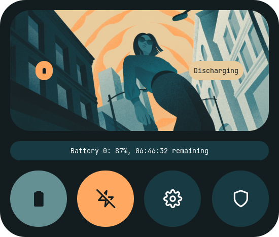 Battery Display battery percentage & charging status with dynamic icons pkexec, acpi, powertop xfce4-power-manager-settings