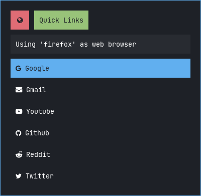 Rofi is A window switcher, Application launcher and dmenu replacement. Rofi started as a clone of simpleswitcher and It has been extended with extra features, like an application launcher and ssh-launcher, and can act as a drop-in dmenu replacement, making it a very versatile tool. Rofi, like dmenu, will provide the user with a textual list of options where one or more can be selected. This can either be running an application, selecting a window, or options provided by an external script.